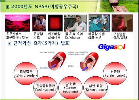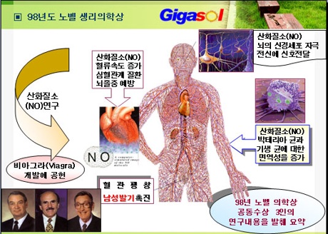 1. 산화 질소의 생성 노벨상 수상 UCLA 이그내로 교수는 강력한 항산화 물질인 산화질소 연구가로 유명하다. 산화 질소는 공기 그대로 마시면 인체에 해를 주지만 몸 스스로 생성시키면 좋은 역할을 하게 된다. 어느 항산화제보다 강력한 산화질소는 유해산소를 최소화해 혈관 내 혈액이 응고돼 혈전이 생기는 것을 막고 동맥경화를 예방힌다. 산화질소 생성을 음식으로는 생선, 콩, 견과류의 단백질이다. 몸에서 산화질소(NO)가 증가하면, 혈관은 건강하고 유연해져 혈액순환을 개선시켜 건강한 심혈관계가 되도록 도와준다. 또한 혈액의 흐름, 심장과 두뇌 그리고 다른 기관들의 기능을 촉진하며 신경계와 심혈관계에 작용해 혈전을 막고 심장마비 또는 뇌졸중을 예방하기도 한다. NO는 심장은 물론 폐, 간, 신장, 위, 생식기관을 포함해 거의 모든 신체 장기의 기능에 영향을 미치며뇌졸중과 심장발작을 유발하는 혈전의 형성을 예방하고 혈압을 조절하는 작용을 하며 혈관에 플라크의 축적을 억제하는 데 핵심적인 역할을 한다. 또한, 면역계가 감염성 세균, 바이러스 및 기생충을 퇴치하는 데 사용되고, 심지어 일부 암성 세포의 증식을 억제한다. NO는 뇌는 기억력을 좋게하고 위궤양의 발병을 막으며 신경 전달 물질로서 NO는 생식기에 혈류를 증가시켜 성기능에 중요한 역할을 하기도 한다. 이러한 산화질소를 근적외선이 생성하는데 도움을 주고 있다.